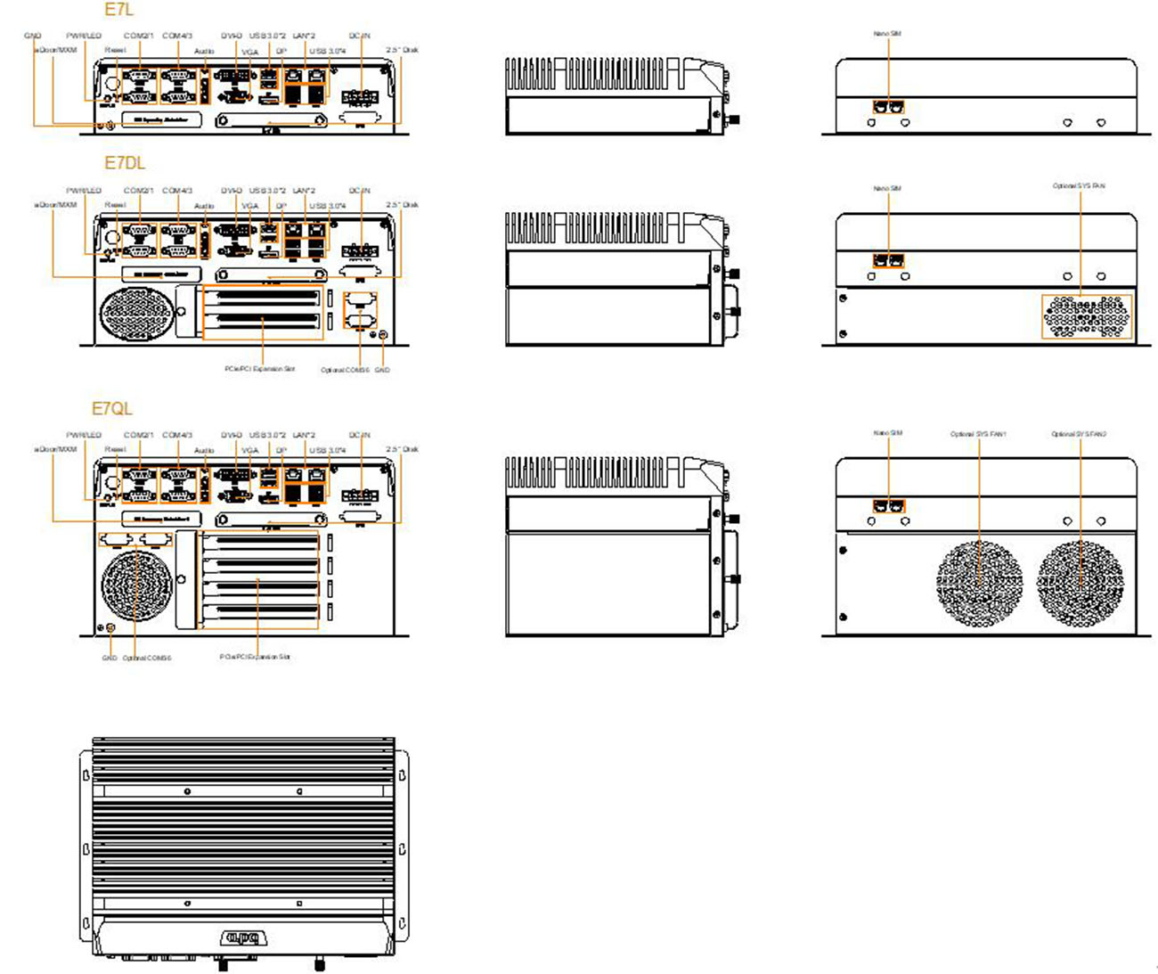 Na druhej strane, platforma Q170 je optimalizovaná pre procesory Intel® 6. až 9. generácie, čo poskytuje výnimočný výpočtový výkon a stabilitu pre dátovo náročné úlohy v systémoch spolupráce medzi vozidlom a cestou a iných priemyselných aplikáciách. Ponúka robustné komunikačné možnosti, dostatok úložného priestoru a možnosti rozšírenia pamäte na spracovanie zložitých výpočtov a spracovania údajov. Okrem toho séria ponúka rozšírenie bezdrôtových funkcií vrátane 4G/5G, Wi-Fi a Bluetooth, čím sa zlepšujú možnosti pripojenia a vzdialenej správy. Na všetkých platformách séria E7L stelesňuje odhodlanie spoločnosti APQ k inováciám a ponúka vysoko výkonné a prispôsobiteľné riešenia pre náročné požiadavky priemyselnej automatizácie a prostredí edge computingu.