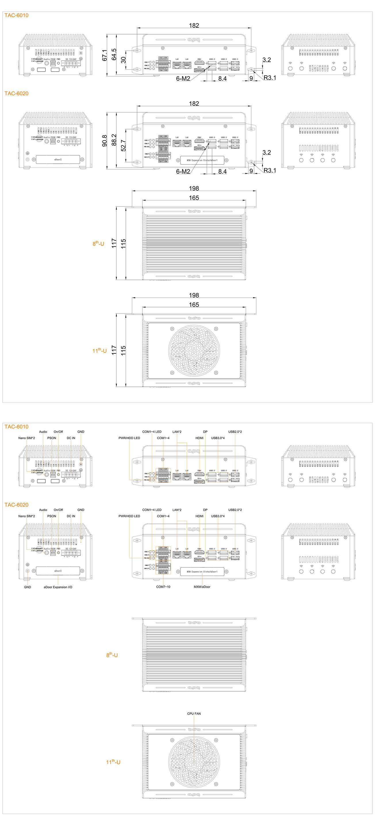 | MXM/aDoor | N/A | 1 * MXM (isekela i-APQ MXM 4 * LAN/6 * COM/16 * ikhadi lokunweba le-GPIO) Qaphela: 11thI-CPU ayikusekeli ukunwetshwa kwe-MXM 1 * Ukunwetshwa kwe-aDoor I/O | |
