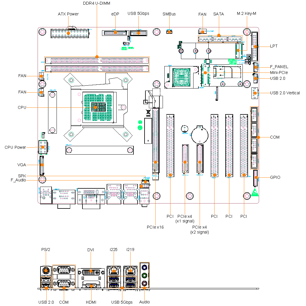 | Mini PCIe | 1 * Mini PCIe (PCIe 3.0x1+USB 2.0, with 1 * SIM Card slot) | |