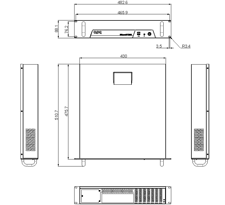| Dimensions | 482.6mm(L) * 475.7mm(W) * 88.1mm(H) | |