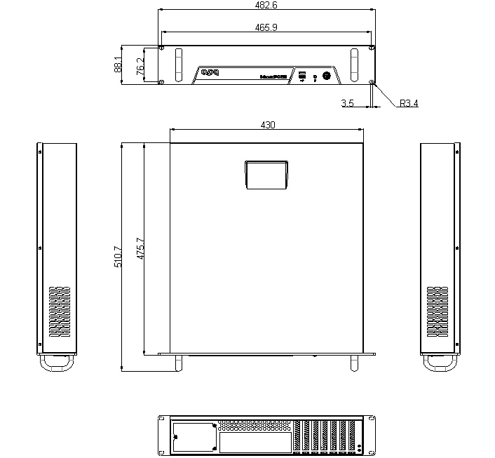 Dimensions | 482.6mm (L) * 475.7mm (W) * 88.1mm (H) |