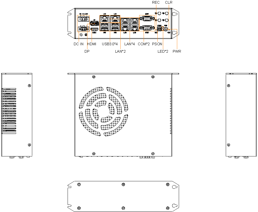 1 × Mini PCIe slot 1 (PCIe x1, supports Wi-Fi) 1 × Mini PCIe slot 2 (USB 2.0 signal, supports 4G, with 1 × Nano SIM card slot) |
