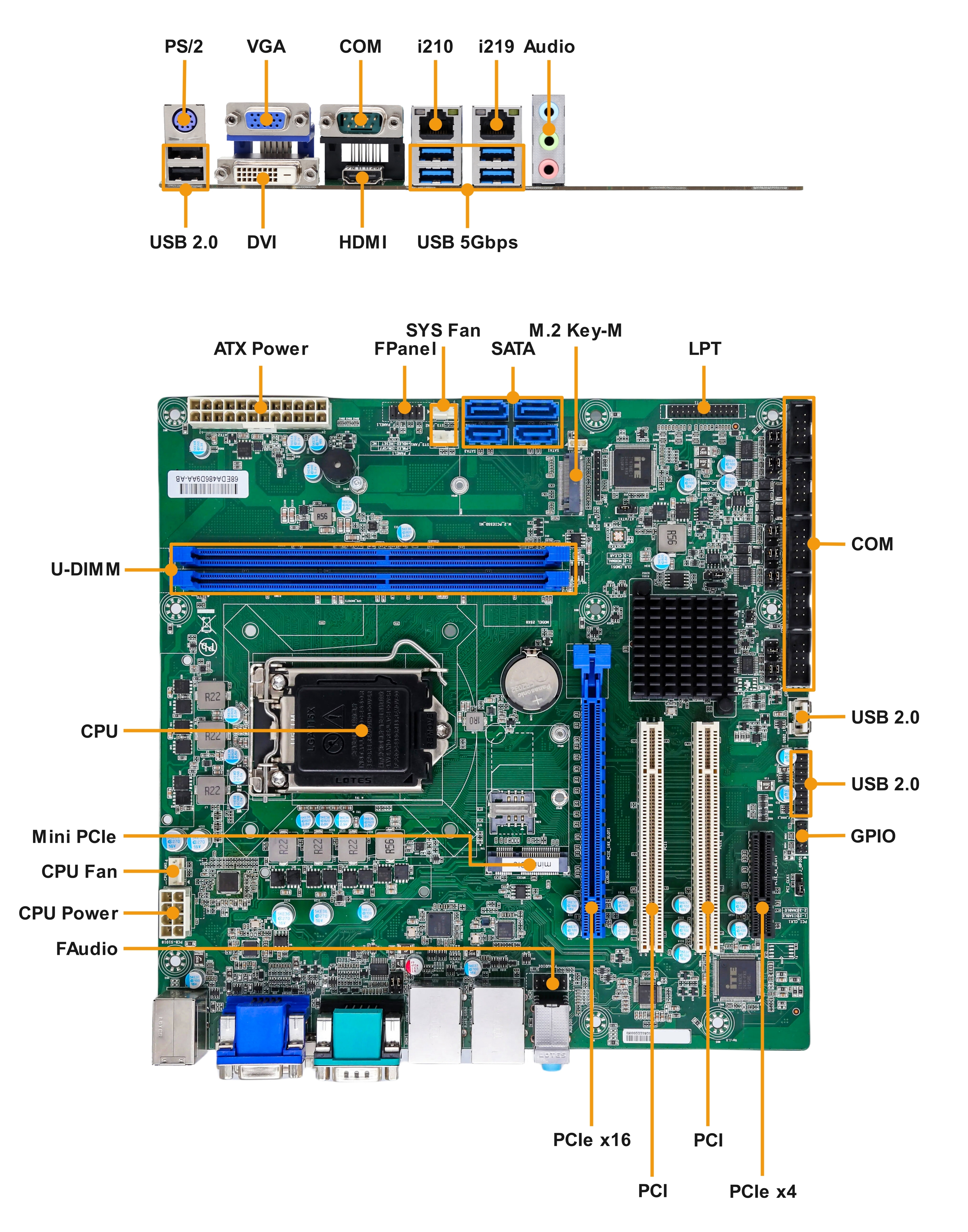 Mini PCIe | 1 * Mini PCIe Slot(PCIe Gen 3 x1 + USB 2.0,with 1 * SIM Card Slot) |
