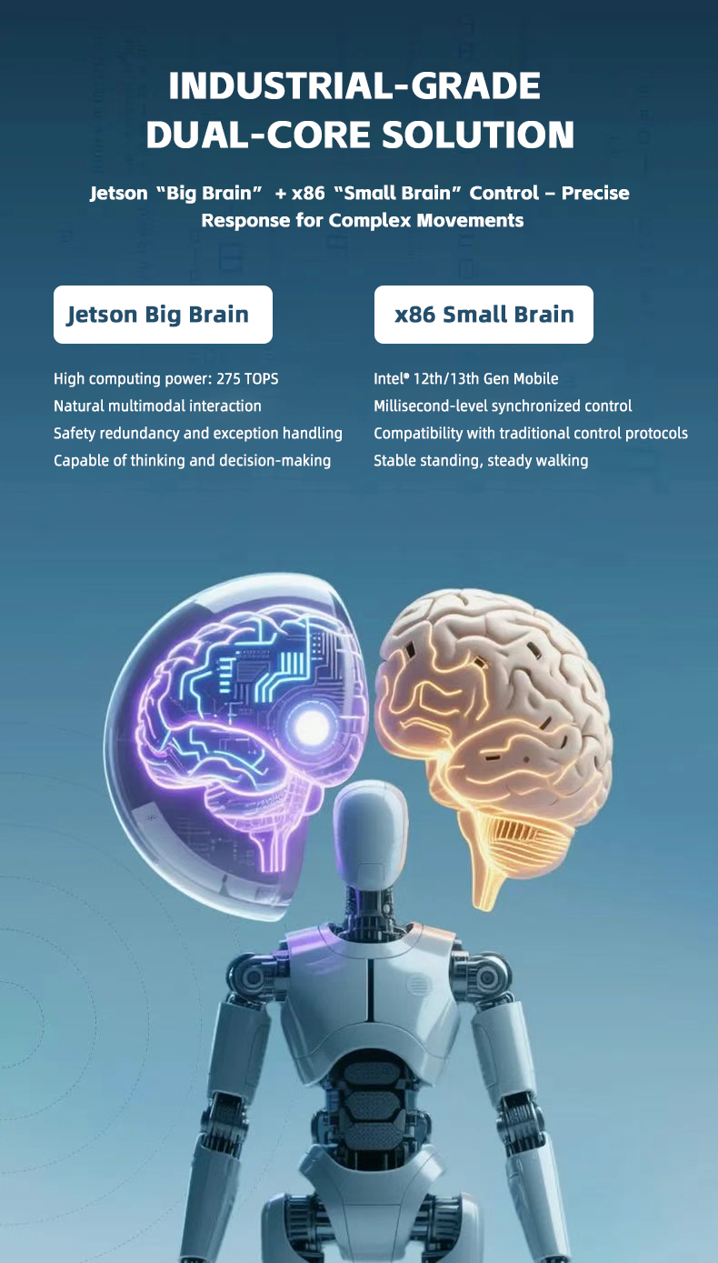 The two brains are interconnected via high-speed channels to build a closed-loop “perception–decision–execution” system. When the vision system detects an assembly deviation, the motion system can instantly perform compensatory adjustments, truly achieving “eye-to-hand” coordination.
