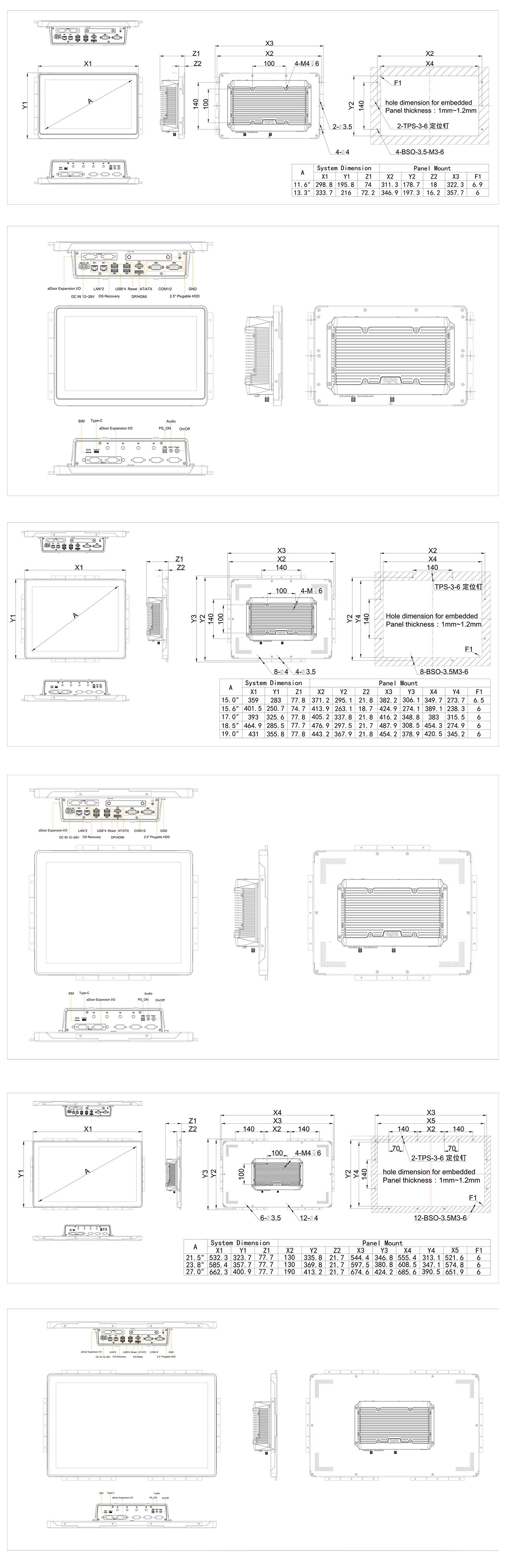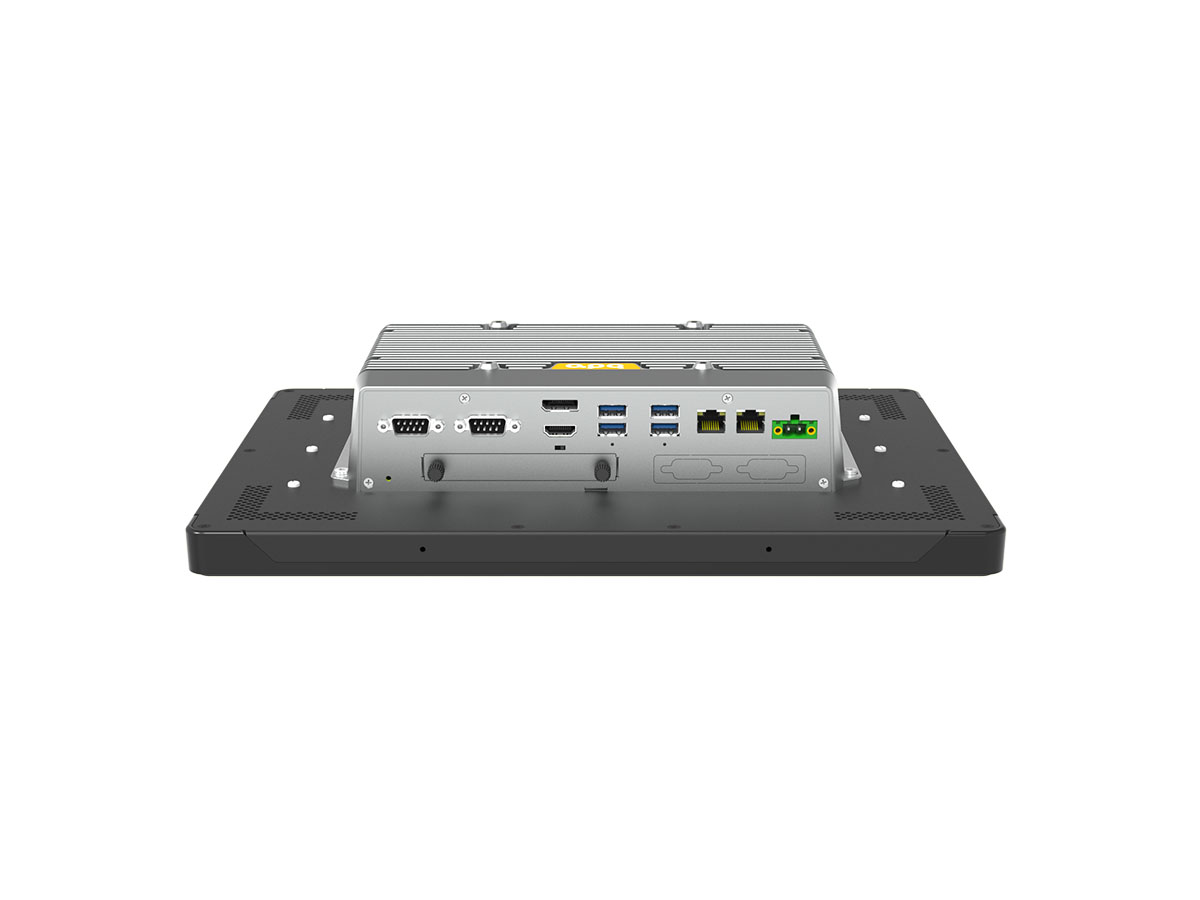 The APQ capacitive touchscreen industrial all-in-one PC PHxxxCL-E6 series, based on the 11th-U platform, features a modular design with display sizes ranging from 11.6 to 27 inches to meet diverse customer needs, supporting both square and widescreen displays. Equipped with a ten-point capacitive touchscreen, it enables precise touch control operations, enhancing the user experience. The all-plastic mold middle frame and front panel with IP65 design ensure stable operation in harsh industrial environments. This industrial all-in-one PC utilizes the Intel® 11th-U mobile platform CPU, delivering strong and reliable performance. The integration of dual Intel® Gigabit network cards further enhance network transmission speed and stability. Dual hard drive support, with a 2.5-inch hard drive in a pull-out design, meets users’ varied storage space requirements. Additionally, it supports APQ aDoor module expansion and WiFi/4G wireless expansion, providing users with more flexible expansion options. Furthermore, the device adopts a fanless design and a removable heat sink, ensuring reliability and stability during long periods of high-load operation. It also supports embedded and VESA mounting options, accommodating different scene layout needs. The 12~28V DC power supply design is well-suited to industrial environment power requirements.
