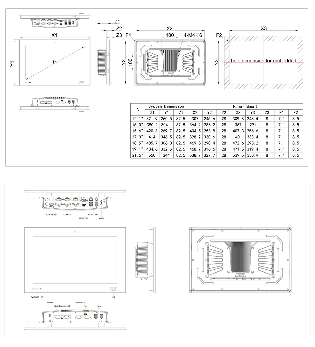 | LCD | Display Size | 12.1" | 15.0" | 15.6" | 17.0" | 18.5" | 19.0" | 21.5" |