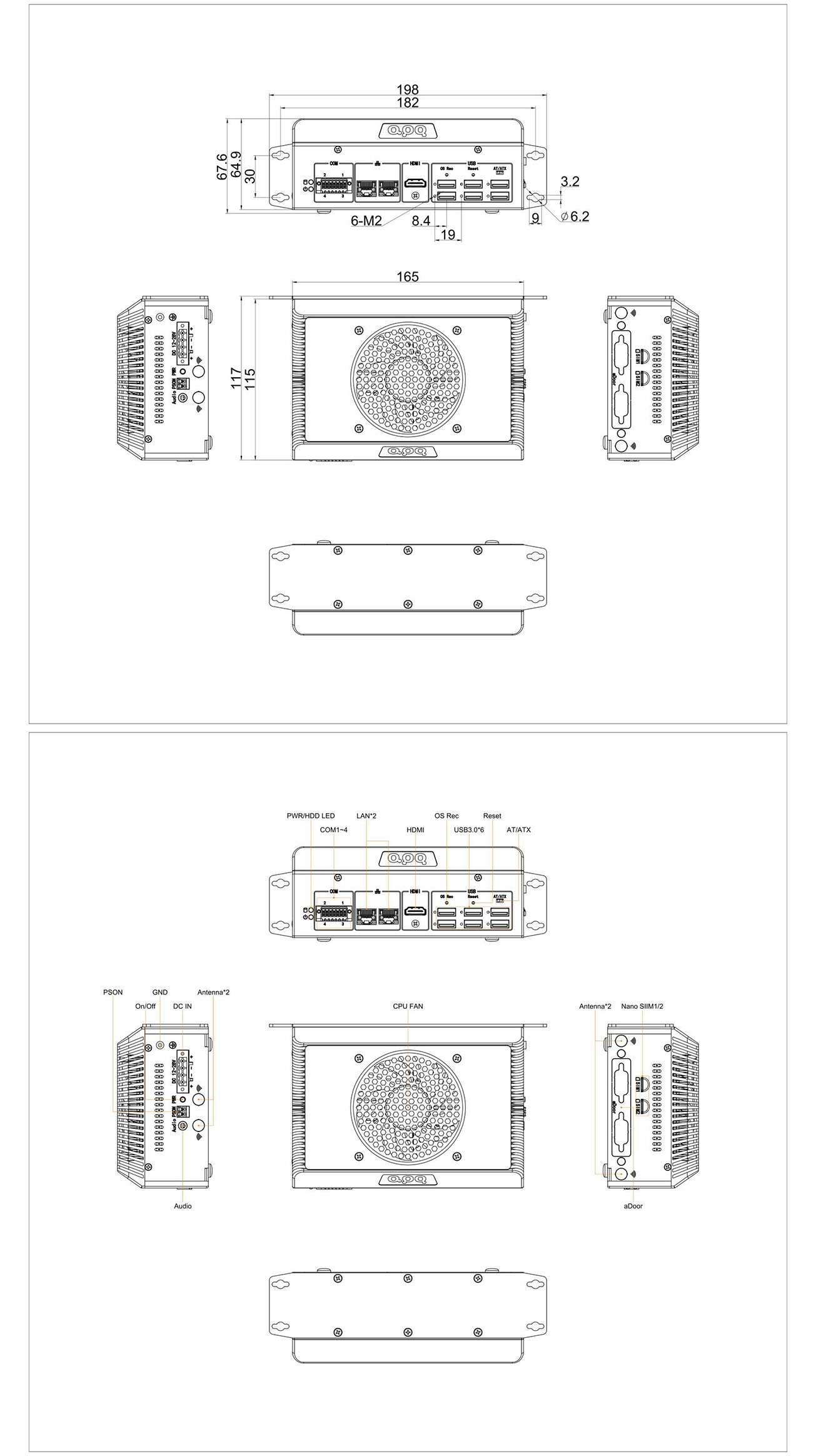 | Left I/O | SIM | 2 * Nano SIM Card slot (Mini PCIe modules provide functional support) |